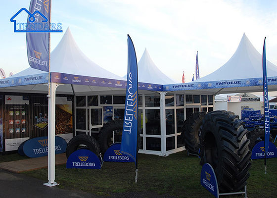 ผ้ากรอบกันน้ํา ผ้าด้านข้าง เต็นท์ปาโกดา สําหรับงานแต่งใหญ่ ผ้าม่านสวนกลางแจ้ง รายการล็อกโก้ที่สามารถปรับแต่งได้